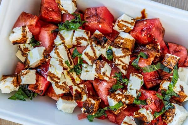 - Sirve la ensalada de sandía inmediatamente como acompañamiento fresco y delicioso.